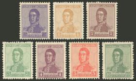 382 ARGENTINA - EMISIONES GENERALES Serie / Nuevo con bisagra N°Cat.: GJ.423/429 Valor de catál.: 23,00 MB. GJ.423/429, serie completa con filigrana hexágonos verticales, dentado 13¼ x 12½, el 10c con defectito ( se obsequia, no se encuentra sumado en el valor indicado ), el resto MB!! Precio inicial: US$ 12 Precio actual: US$ 12 Oferte US$ 12 o más