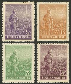 350 ARGENTINA - EMISIONES GENERALES Serie / Nuevo con bisagra N°Cat.: GJ.328a/331a Valor de catál.: 16,00 MB. GJ.328a/331a, los 4 primeros valores de la serie sin filigrana Precio inicial: US$ 9 Precio actual: US$ 9 Oferte US$ 9 o más