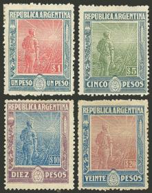 365 ARGENTINA - EMISIONES GENERALES Serie / Nuevo con bisagra N°Cat.: GJ.359/362 Valor de catál.: 337,00 MB. GJ.359/362, los 4 valores altos de la serie, colores muy frescos, MB calidad!! Precio inicial: US$ 200 Precio actual: US$ 200 Oferte US$ 200 o más