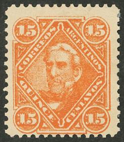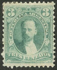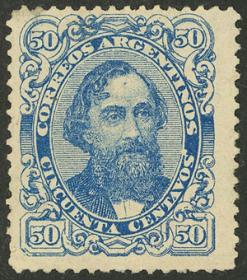 223 ARGENTINA - EMISIONES GENERALES Sello suelto / Nuevo con bisagra N°Cat.: GJ.93 Valor de catál.: 350,00 Buena GJ.93, 50c. Mitre, valor alto de la serie reengomado, posición 5 del reporte, con VARIEDAD : " S´ " apóstrofe después de CENTAVOS, presenta unas mínimas peladuritas al dorso, raro Precio inicial: US$ 40 Precio actual: US$ 40 Oferte US$ 40 o más