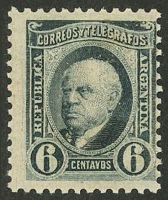 225 ARGENTINA - EMISIONES GENERALES Sello suelto / Nuevo con bisagra N°Cat.: GJ.94 Valor de catál.: 70,00 MB. GJ.94, 6c. Sarmiento, dentado 12, VARIEDAD : sello mucho mas ancho que lo normal ( roba parte del sello vecino ) Precio inicial: US$ 40 Precio actual: US$ 40 Oferte US$ 40 o más