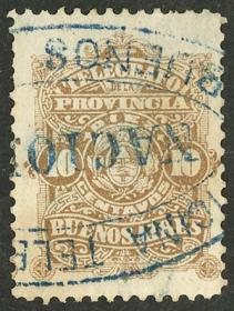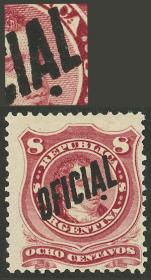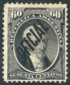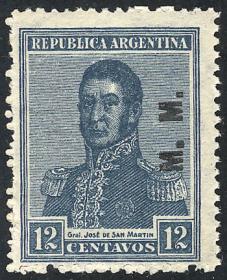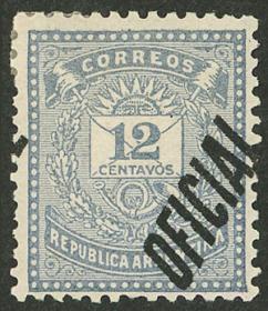 1036 ARGENTINA - OFICIALES Sello suelto / Nuevo con bisagra N°Cat.: GJ.19 Valor de catál.: 12,5 MB. GJ.19, con VARIEDAD : sobrecarga desplazada, MB Precio inicial: US$ 8 Precio actual: US$ 8 Oferte US$ 8 o más
