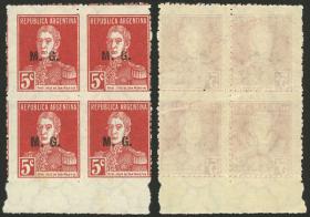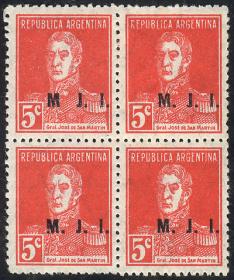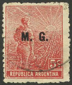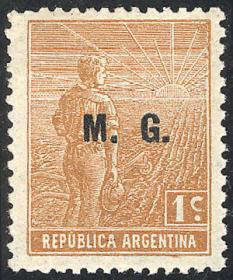 1047 ARGENTINA - OFICIALES Lote / Nuevo con bisagra N°Cat.: Aceptable-Buena Mas de 30 cuadros nuevos con sobrecarga " M. G. ", valor de catálogo superior a US$ 150-, todos con óxido Precio inicial: US$ 10 Precio actual: US$ 10 Oferte US$ 10 o más