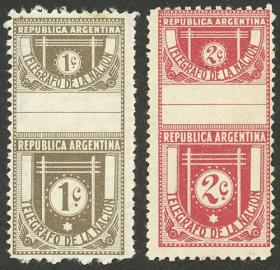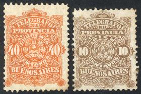 1118 ARGENTINA - TELÉGRAFOS Serie / Nuevo o Nuevo Mint N°Cat.: GJ.14/15 Valor de catál.: US$ 10 MB. GJ.14/15, Telégrafo Nacional, los 2 primeros valores de la serie Precio inicial: US$ 5 Precio actual: US$ 5 Oferte US$ 5 o más