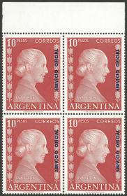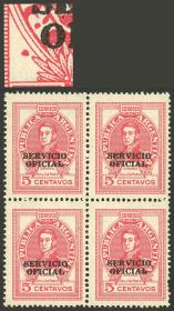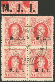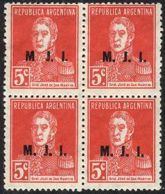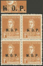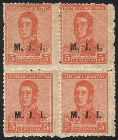 1067 ARGENTINA - OFICIALES Multiplo / Usado N°Cat.: GJ.505a Buena GJ.505a, tira de 4, todos con VARIEDAD: "M..M" Precio inicial: US$ 4 Precio actual: US$ 4 Oferte US$ 4 o más