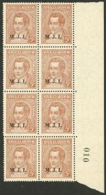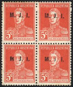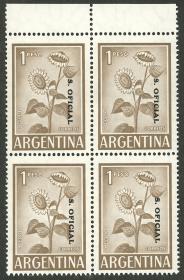 1063 ARGENTINA - OFICIALES Multiplo / Nuevo Mint N°Cat.: GJ.445 Valor de catál.: US$ 4,80+30% MB. GJ.445, bloque de 8 con BdH MINT!! Precio inicial: US$ 2 Precio actual: US$ 2 Oferte US$ 2 o más