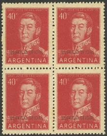 1096 ARGENTINA - OFICIALES Multiplo / Nuevo Mint N°Cat.: GJ.756 Valor de catál.: US$ +30 Buena-MB GJ.756, gran bloque de 40 ejemplares EdH, se ven algunos con VARIEDAES, a modo de ejemplo el 3er sello de la 3ra fila: mancha sobre la nariz del prócer, MB!! Precio inicial: US$ 10 Precio actual: US$ 10 Oferte US$ 10 o más