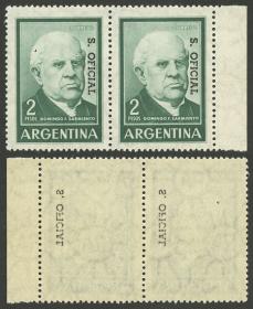 1099 ARGENTINA - OFICIALES Pareja / Nuevo Mint N°Cat.: GJ.768 Buena-MB GJ.768, pareja con VARIEDAD: sobrecargas retintadas al dorso Precio inicial: US$ 3 Precio actual: US$ 3 Oferte US$ 3 o más