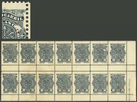 1128 ARGENTINA - TELÉGRAFOS Multiplo / Nuevo Mint N°Cat.: GJ.65 Valor de catál.: US$ 28 Buena-MB GJ.65, gran bloque de 14 ejemplares con BdH y leyenda del impresor, el 6to sello de la primera fila con VARIEDAD: área sobre la "O" de COLONIAS sin impresión, las variedades en el presente sello son muy escasas, MINT, gran lujo!!! Precio inicial: US$ 30 Precio actual: US$ 30 Oferte US$ 30 o más
