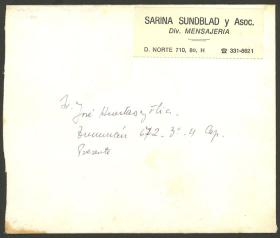 1135 ARGENTINA - CORREOS PRIVADOS Sobre / N°Cat.: Buena Sobre entregado por la división mensajería de la empresa "Sarina Sundblad y Asoc." Precio inicial: US$ 5 Precio actual: US$ 5 Oferte US$ 5 o más