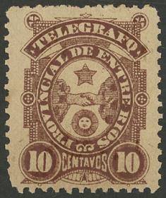 1125 ARGENTINA - TELÉGRAFOS Sello suelto / Nuevo con bisagra N°Cat.: GJ.52 Valor de catál.: US$ 25 Aceptable-Buena GJ.52, 10c. Telégrafo de Entre Ríos, mínimo defectito al dorso, sino MINT Precio inicial: US$ 9 Precio actual: US$ 9 Oferte US$ 9 o más