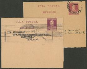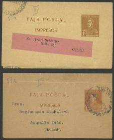 1164 ARGENTINA - ENTEROS POSTALES Entero postal / Usado N°Cat.: FAJ-63A+63B Valor de catál.: US$ 15 MB. FAJ-63A+63B, Fajas de 2c San Martín, tipografiada + litografiada ( en 2 diferentes colores ) Precio inicial: US$ 9 Precio actual: US$ 9 Oferte US$ 9 o más