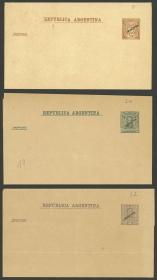 1142 ARGENTINA - ENTEROS POSTALES Entero postal / N°Cat.: CAP-19/20+22 Valor de catál.: US$ 3 MB. CAP-19/20+22, Serie completa ( 3 v. ) Precio inicial: US$ 2 Precio actual: US$ 2 Oferte US$ 3 o más