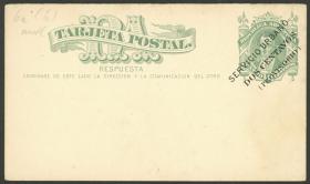 1140 ARGENTINA - ENTEROS POSTALES / N°Cat.: CAP-8MU Valor de catál.: US$ 25 MB. CAP-8MU, Carta Postal con respuesta postal paga de 3 + 3c., con sobrecarga " MUESTRA ", MB Precio inicial: US$ 15 Precio actual: US$ 15 Oferte US$ 15 o más
