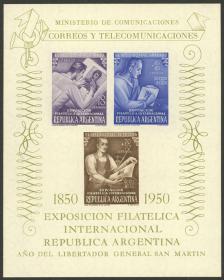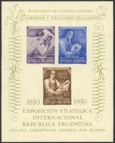1003 ARGENTINA - BLOCKS Bloque conmemorativo / Nuevo con bisagra N°Cat.: GJ.01a Valor de catál.: US$ 90 Buena-MB GJ.01a, con VARIEDAD: acento sobre la primera "A" de FILATELICA, leve marquita de bisagra, goma muy fresca, MB calidad!! Precio inicial: US$ 50 Precio actual: US$ 50 Oferte US$ 50 o más