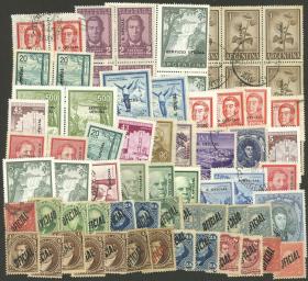1110 ARGENTINA - OFICIALES Lote / Usado N°Cat.: Buena Lote conteniendo más de 80 cuadros o bloques mayores de servicio oficial, todos usados, ideal para buscar pequeñas variedades o matasellos Precio inicial: US$ 15 Precio actual: US$ 15 Oferte US$ 15 o más