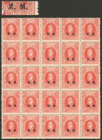 1066 ARGENTINA - OFICIALES Multiplo / Nuevo Mint N°Cat.: GJ.496c Valor de catál.: US$ 42+50% MB. GJ.496c, bloque de 25, el último sello de la 2da fila con VARIEDAD : primera " M " con primer trazo cortado parcial y diagonalmente, MB calidad!! Precio inicial: US$ 25 Precio actual: US$ 25 Oferte US$ 25 o más