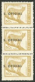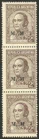 1068 ARGENTINA - OFICIALES Multiplo / Nuevo o Nuevo Mint N°Cat.: GJ.506a Valor de catál.: US$ 9 Buena-MB GJ.506a, tira de 3, los 3 sellos con VARIEDAD : " M .. M " Precio inicial: US$ 4 Precio actual: US$ 4 Oferte US$ 4 o más