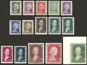 1082 ARGENTINA - OFICIALES Serie / Nuevo o Nuevo Mint N°Cat.: GJ.685 y otros Valor de catál.: US$ 99 MB. GJ.685/686 + 689 + 691/702, Eva Perón, serie básica completa, el valor alto es MINT y esquina de hoja, lujo! Precio inicial: US$ 60 Precio actual: US$ 60 Oferte US$ 60 o más