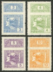 1116 ARGENTINA - TELÉGRAFOS Serie / Nuevo con bisagra N°Cat.: GJ.5/8 Valor de catál.: US$ 60 MB. GJ.5/8, Telégrafo Nacional, los 4 primeros valores de la serie Precio inicial: US$ 30 Precio actual: US$ 30 Oferte US$ 30 o más