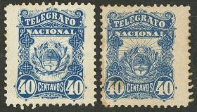 1112 ARGENTINA - TELÉGRAFOS Serie / Sin usar (sin goma) N°Cat.: GJ.3/4 Valor de catál.: US$ 35 MB. GJ.3/4, 40c. Telégrafo Nacional Tipo A ( sin goma ) + Tipo B ( con goma original, muy escaso ) Precio inicial: US$ 20 Precio actual: US$ 20 Oferte US$ 20 o más