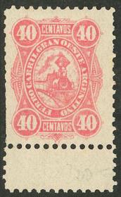 1129 ARGENTINA - TELÉGRAFOS Sello suelto / Sin usar (sin goma) N°Cat.: GJ.72 Valor de catál.: US$ 330 Buena-MB GJ.72, 40c. Ferrocarril Gran Oeste Argentino, valor alto de la serie con cupón abajo, uno de los sellos de telégrafos MAS RAROS, extraordinaria oportunidad por su BAJA BASE!!! Precio inicial: US$ 35 Precio actual: US$ 35 Oferte US$ 35 o más