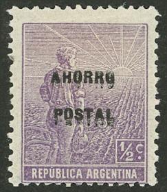 1131 ARGENTINA - AHORRO POSTAL Sello suelto / Nuevo con bisagra N°Cat.: GJ.1 Buena-MB GJ.1, ½c Ahorro Postal con VARIEDAD : sobrecarga DOBLE, raro Precio inicial: US$ 10 Precio actual: US$ 10 Oferte US$ 10 o más
