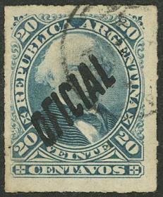 1037 ARGENTINA - OFICIALES Sello suelto / Usado N°Cat.: GJ.23 Valor de catál.: US$ 15 MB. GJ.23, 20c. V. Sarsfield Precio inicial: US$ 7 Precio actual: US$ 7 Oferte US$ 7 o más