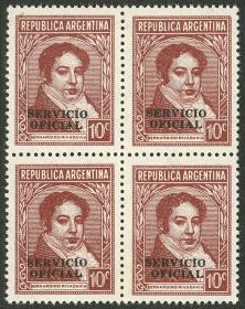 1105 ARGENTINA - OFICIALES - LOTES Lote / Nuevo con bisagra N°Cat.: Aceptable-Buena 12 cuadros de Servicio Oficial, algunos con la goma tonalizada por haber estado mal guardados y otros de muy buena calidad, valor de catálogo superior a US$ 70-, baja base!! Precio inicial: US$ 7 Precio actual: US$ 7 Oferte US$ 7 o más