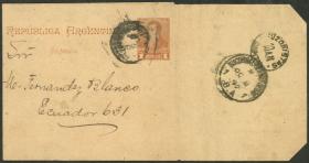 1158 ARGENTINA - ENTEROS POSTALES Entero postal / Usado N°Cat.: FAJ-53 Valor de catál.: US$ 75 MB. FAJ-53, Faja de 2c. San Martín con punto después del valor, usada, rara Precio inicial: US$ 45 Precio actual: US$ 45 Oferte US$ 45 o más
