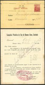 1145 ARGENTINA - ENTEROS POSTALES Entero postal / Usado N°Cat.: CAP-36 MB. CAP-36, Carta Postal de 5c, con impresión de la " Compañía Primitiva de Gas de Buenos Aires, Limitada ", para informar los cobros por consumos de diferentes períodos, MB calidad Precio inicial: US$ 20 Precio actual: US$ 20 Oferte US$ 20 o más