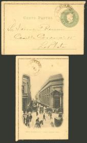1144 ARGENTINA - ENTEROS POSTALES Entero postal / Usado N°Cat.: CAP-27C Valor de catál.: US$ 50 Buena-MB CAP-27C, Carta Postal de 4c, con vista al dorso de la " Calle Reconquista y Piedad ", enviada desde Olavarría a Bs As el 30 de Mayo de 1898, escasa Precio inicial: US$ 25 Precio actual: US$ 25 Oferte US$ 25 o más