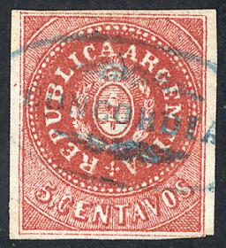 54 ARGENTINA - RIVADAVIAS Sello suelto / Usado N°Cat.: GJ.23 MB. GJ.23, Con matasello "CERTIFICADA" de Paso de los Libres en color azul, excelente calidad, raro! Precio inicial: US$ 50 Precio actual: US$ 50 Oferte US$ 50 o más