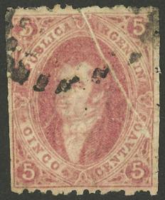18 ARGENTINA - CABECITAS Sello suelto / Usado N°Cat.: GJ.21A Valor de catál.: US$88 MB. GJ.21A, 1P. Rosa acarminado, magnífico ejemplar de márgenes muy amplios y gran frescura, lujo! Precio inicial: US$ 50 Precio actual: US$ 50 Oferte US$ 50 o más