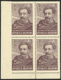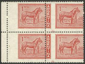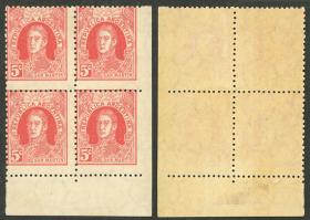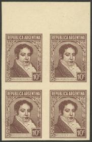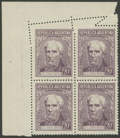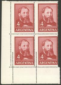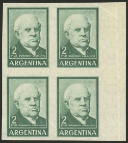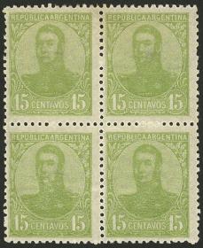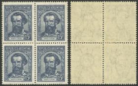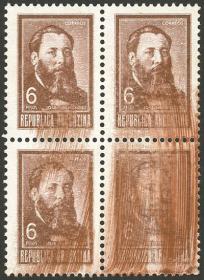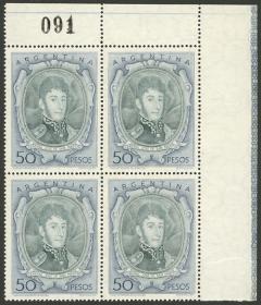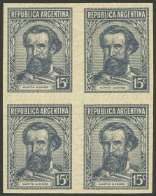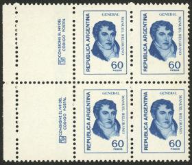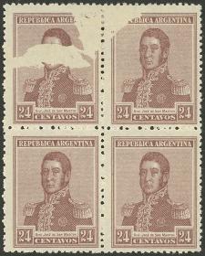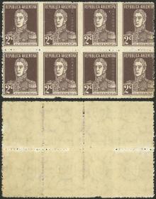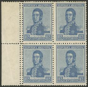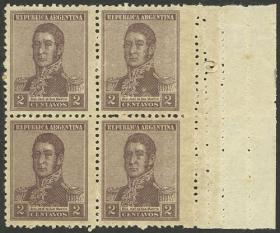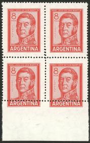 183 ARGENTINA - EMISIONES GENERALES Cuadro / Nuevo Mint N°Cat.: GJ.1306A var. MB. GJ.1306A, 8P. San Martín impreso en papel mate importado blando, cuadro con borde de hoja inferior y con el DENTADO MUY DESPLAZADO (los sellos inferiores sin el nombre del país!), excelente calidad! NOTA: El valor de un cuadro normal es US$36! Precio inicial: US$ 50 Precio actual: US$ 50 Oferte US$ 50 o más