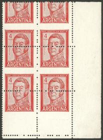 178 ARGENTINA - EMISIONES GENERALES Multiplo / Nuevo Mint N°Cat.: GJ.1139A var. MB. GJ.1139A, Bloque de 6 esquina de hoja con el DENTADO MUY DESPLAZADO, los sellos de abajo con parte en blanco y sin valor facial, excelente y espectacular! Precio inicial: US$ 90 Precio actual: US$ 90 Oferte US$ 90 o más