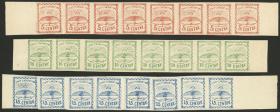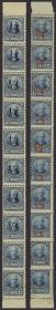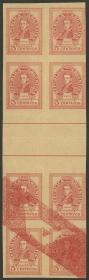 91 ARGENTINA - EMISIONES GENERALES Multiplo / Nuevo Mint N°Cat.: GJ.133/4 MB. GJ.133/134, PRUEBAS DE SOBRECARGA, 2 tiras de 10 sellos con pruebas de los distintos tipos de sobrecarga propuestos (9 diferentes en color rojo y 8 en negro), excelente calidad, rarísimo conjunto! Precio inicial: US$ 275 Precio actual: US$ 275 Oferte US$ 275 o más