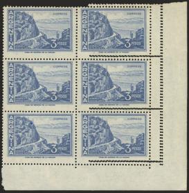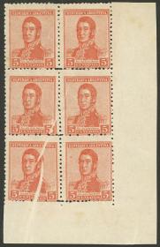 177 ARGENTINA - EMISIONES GENERALES Multiplo / Nuevo Mint N°Cat.: GJ.1137 var. MB. GJ.1137, 3P. Cuesta de Zapata, bloque de 6 esquina de hoja, los sellos de la derecha con TRIPLE DENTADO, expectacular! Precio inicial: US$ 50 Precio actual: US$ 50 Oferte US$ 50 o más