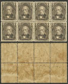 86 ARGENTINA - EMISIONES GENERALES Multiplo / Nuevo o Nuevo Mint N°Cat.: GJ.80 MB. GJ.80, 1888 ½c. Urquiza, gran bloque de 8 con pequeñas variedades como "Punto sobre D de MEDIO", "Acento sobre A y V de CENTAVO", etc., excelente calidad! Precio inicial: US$ 25 Precio actual: US$ 25 Oferte US$ 28 o más