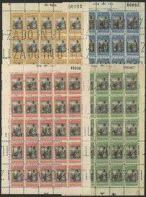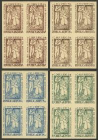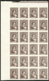 189 ARGENTINA - EMISIONES GENERALES Multiplo / Nuevo Mint N°Cat.: GJ.1632 var. MB. RAREZA: GJ.1632, bloque de 20 sellos impreso sobre papel normal que en parte tuvo un importante defecto de fabricación: en varias zonas que abarca 8 sellos total o parcialmente es muy finito y sin encapado (mate y neutro, además de transparente), excelente y rarísima variedad! Precio inicial: US$ 300 Precio actual: US$ 300 Oferte US$ 300 o más