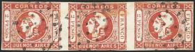 15 ARGENTINA - CABECITAS Multiplo / Usado N°Cat.: GJ.18 MB. GJ.18, 2P. rojo, tira horizontal de 3 sellos con matasello puntos de Buenos Aires, márgenes justos pero completos, muy bonita y rara! Precio inicial: US$ 700 Precio actual: US$ 700 Oferte US$ 700 o más