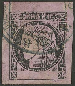53 ARGENTINA - RIVADAVIAS Sello suelto / Usado N°Cat.: GJ.23 MB. GJ.23, Con un rarísimo matasello circular FRANCA en negativo, posiblemente de Salta, solo 2 conocidos! Precio inicial: US$ 250 Precio actual: US$ 250 Oferte US$ 275 o más