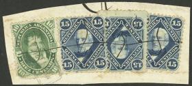 79 ARGENTINA - EMISIONES GENERALES Pieza / Usado N°Cat.: GJ.39+40 Buena-MB GJ.39 + 3x GJ.40 (total 55c.) usados sobre fragmento de una carta, con atractiva obliteración a pluma, muy interesante! Precio inicial: US$ 25 Precio actual: US$ 25 Oferte US$ 25 o más
