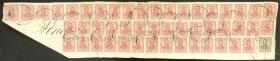 102 ARGENTINA - EMISIONES GENERALES Pieza / Usado N°Cat.: GJ.280 Buena PIEZA MÁXIMA: GJ.280, 5c. San Martín en óvalo, 48 ejemplares + 1x 2c. sobre un gran fragmento de sobre matasellado el 13/JUL/1911 en Buenos Aires, pieza máxima conocida en usado para este valor, leves defectitos normales en un fragmento tan grande, raro! Precio inicial: US$ 25 Precio actual: US$ 25 Oferte US$ 25 o más