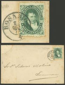 78 ARGENTINA - EMISIONES GENERALES Sobre / N°Cat.: GJ.39b Valor de catál.: US$300 Buena-MB GJ.39b, 1867 10c. Belgrano impreso en PAPEL LISTADO, franqueando un sobre enviado de Rosario a Tucumán el 2/OCT/1873, MB y raro! El sello está parcialmente despegado para ser examinado y comprobar que es impreso en papel listado vertical! Precio inicial: US$ 150 Precio actual: US$ 150 Oferte US$ 165 o más
