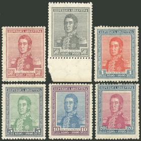 106 ARGENTINA - EMISIONES GENERALES Serie / Nuevo con bisagra N°Cat.: GJ.417/422 Valor de catál.: US$400 MB. GJ.417/422, 1916 Centenario de la Independencia 30c. a 20P., los 6 valores altos de la serie, excelente calidad! Precio inicial: US$ 250 Precio actual: US$ 250 Oferte US$ 250 o más