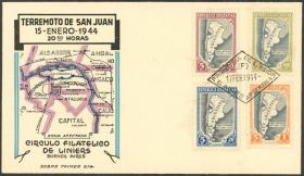 152 ARGENTINA - EMISIONES GENERALES Sobre / N°Cat.: GJ.912/5 Valor de catál.: US$100 MB. GJ.912/915, 1944 Pro víctimas del terremoto de San Juan, sobre PDE de muy buena calidad! Precio inicial: US$ 60 Precio actual: US$ 60 Oferte US$ 60 o más