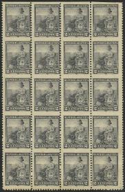 97 ARGENTINA - EMISIONES GENERALES Multiplo / Nuevo Mint N°Cat.: GJ.219PH Valor de catál.: US$150+ MB. GJ.219PH, 1899 2c. Libertad con Escudo, gran bloque de 20 sellos SIN DENTADO HORIZONTAL, nuevo mint (una o dos estampillas con marquita de bisagra), excelente calidad! Precio inicial: US$ 100 Precio actual: US$ 100 Oferte US$ 100 o más