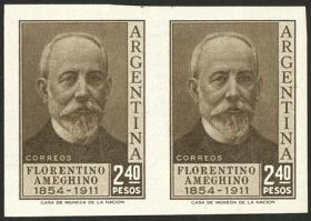 163 ARGENTINA - EMISIONES GENERALES Pareja / Nuevo con bisagra N°Cat.: GJ.1049PT Valor de catál.: US$150 MB. GJ.1049PT, $2,40 Florentino Ameghino, PAREJA SIN DENTAR impresa en PAPEL TIZADO, nuevo con muy suave marquita de bisagra, MB calidad! Precio inicial: US$ 70 Precio actual: US$ 70 Oferte US$ 70 o más