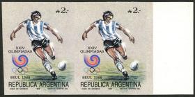 192 ARGENTINA - EMISIONES GENERALES Pareja / Nuevo Mint N°Cat.: GJ.2405P Valor de catál.: US$50 MB. GJ.2405P, 1988 Juegos Olímpicos de Corea, Fútbol, PAREJA SIN DENTAR nueva mint, excelente calidad! Precio inicial: US$ 30 Precio actual: US$ 30 Oferte US$ 30 o más